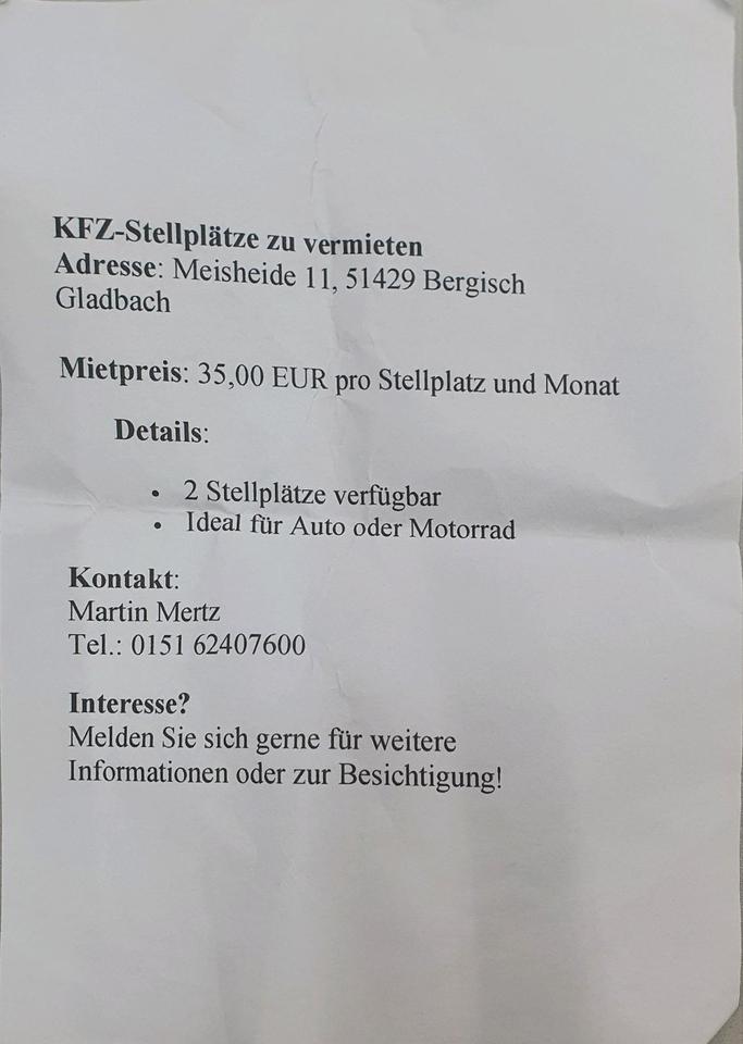 2 Stellplätze zu vermieten